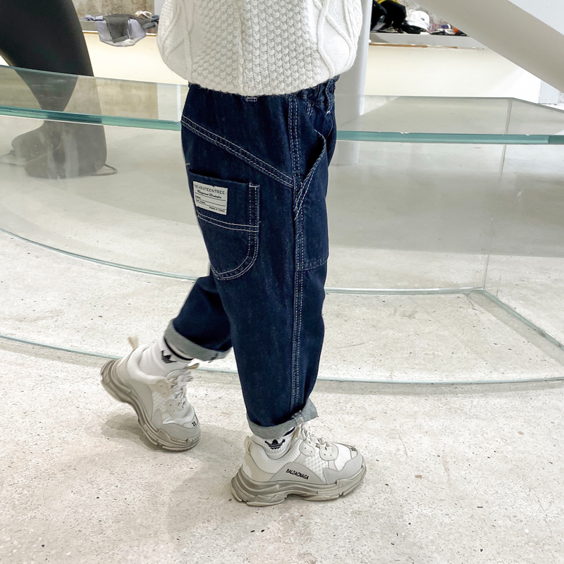 韓版秋季復(fù)古百搭寬松高腰做舊磨白直筒牛仔